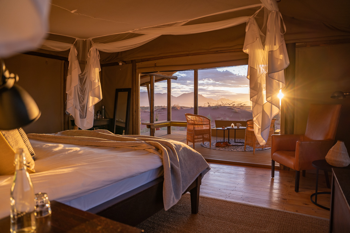 For this tour, we sort out some of the best accommodation to immerse ourselves right within the Namibian landscape.